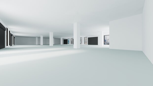 un ampio locale anteriore, luminoso e facilmente adattabile a molteplici esigenze, perfetto come area vendita, reception, showroom o open-space operativo;