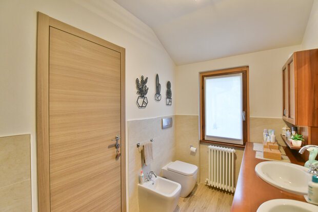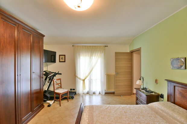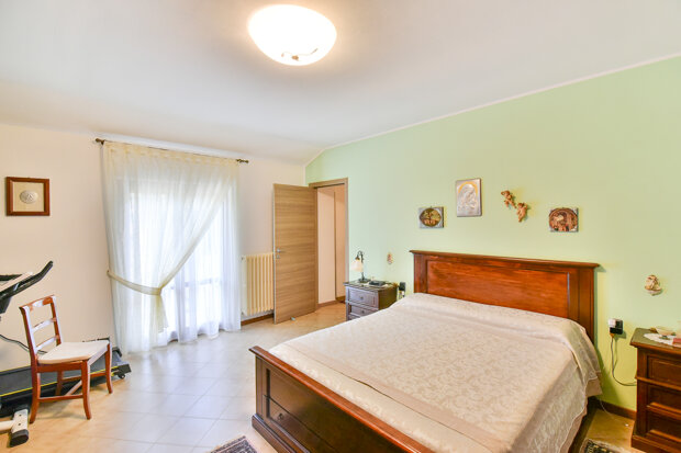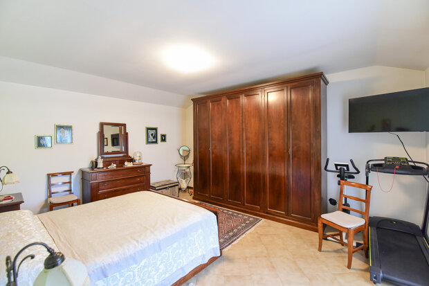 La parte più intima della casa ospita due camere matrimoniali, entrambe spaziose e ben illuminate, ideali per accogliere una famiglia o per chi desidera una stanza in più da dedicare al lavoro o al tempo libero. Il bagno padronale, moderno e finemente rifinito, completa il piano con stile ed essenzialità.